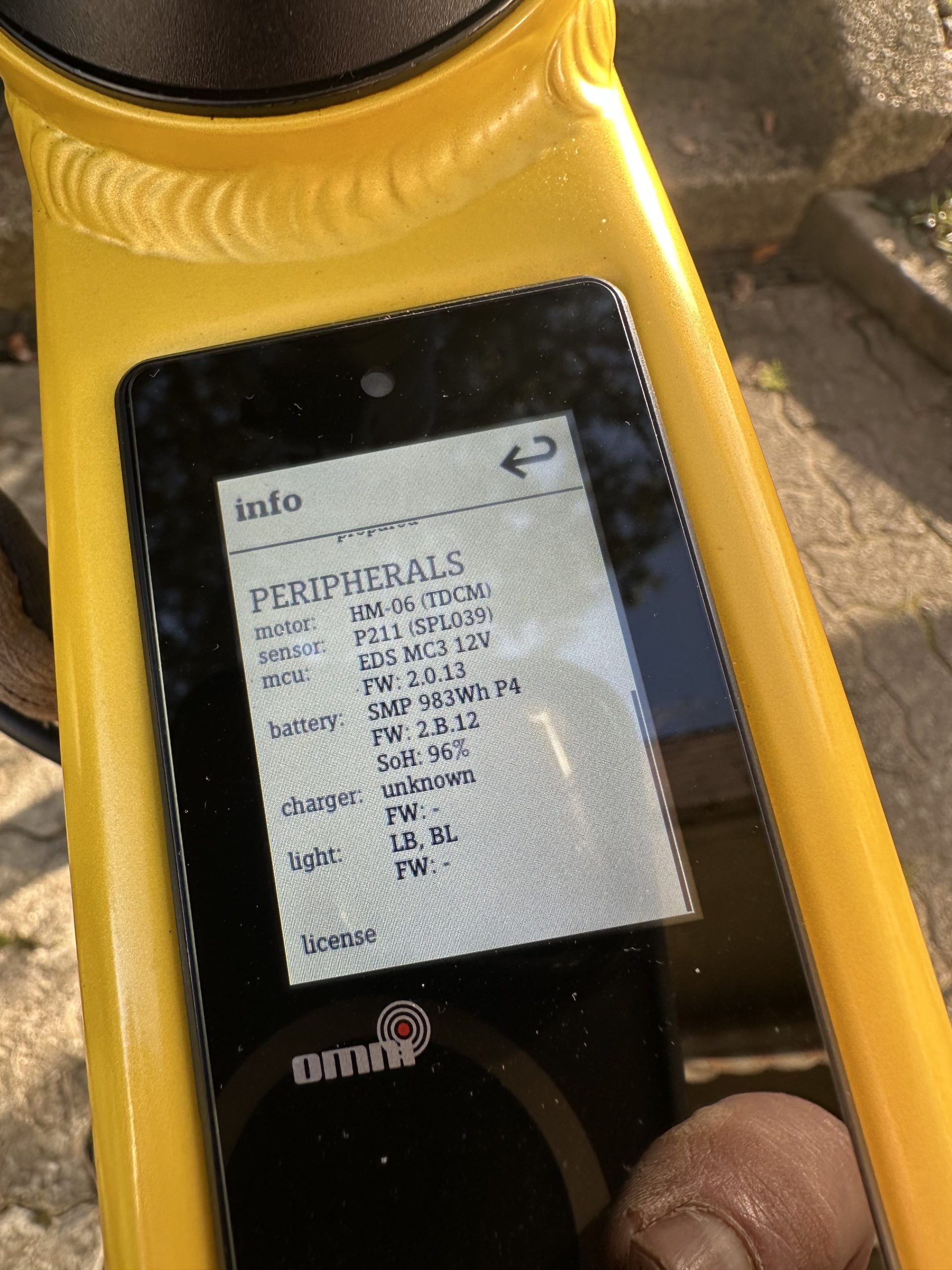 La batterie 983Wh a été changée en 2023 et affiche un état de santé (SOH) à 96%, soit proche du neuf.